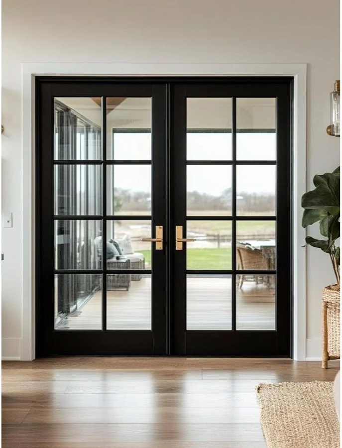Pintu Kaca Aluminium Dobel dengan 2 Daun (Kupu Tarung) Model Ornamen/Polos ketebalan kusen 3inch Kaca Full ketebalan 5 mm